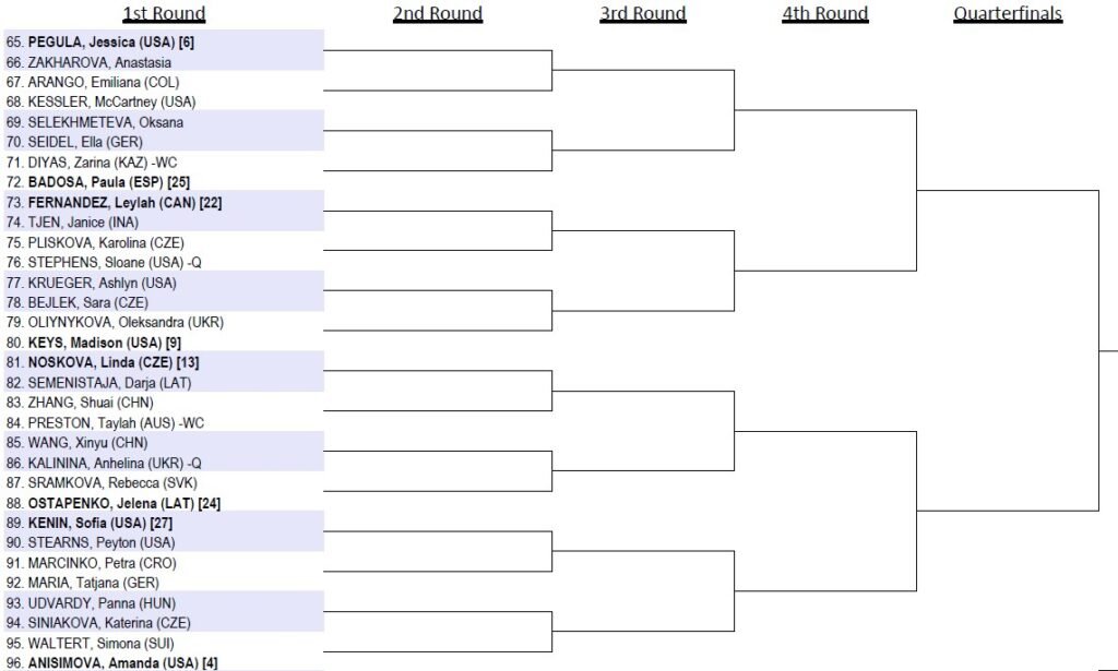 Quite a bit of depth in this quarter too, with Jess Pegula, reigning champion, Madison Keys, and Paula Badosa, all vying for the same quarter-final spot. Plenty don’t expect Keys to back up as a winner again, but I certainly don’t see her going home in week 1.